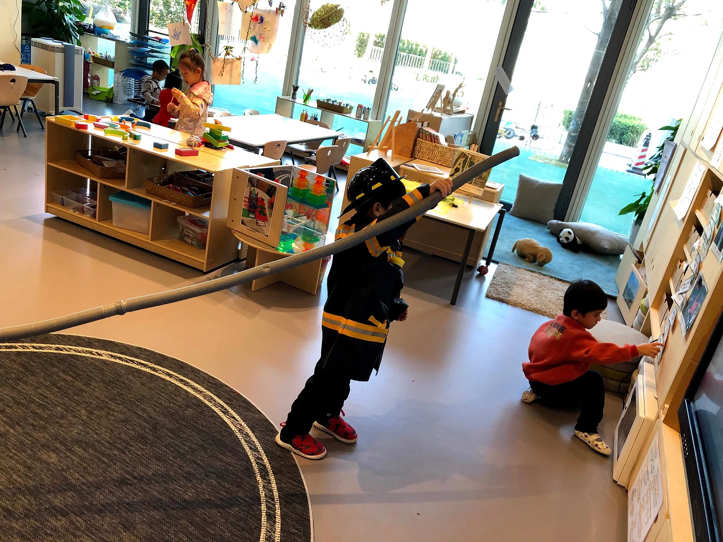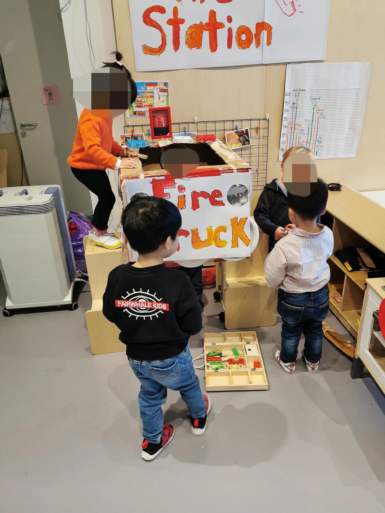 One day during the many adventures of the of the fire truck the wheel (paper plate) broke and fell off. For the children it didn’t really make a difference. It was still perfectly functional in their play. For us (teaching team) we had a dilemma. Do we intervene and stop the play because the fir truck only has 3 "functional" wheels? Alternatively we keep the play going because maybe for the children the fire truck can fly or has an invisible wheel etc. These types of moments happen in play often and the adults need to decide whether to act or wait.